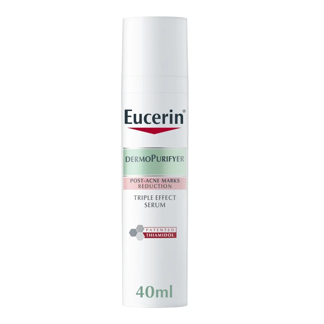 مصمم من الثياميدول، حمض الساليسيليك ومضادات الأكسدة، يعمل ديرمو بيوريفاير تريبل افكت سيروم من يوسيرين على تخفيف علامات حب الشباب مع مرور الزمن ويمنع تراكم الشوائب الجديدة.